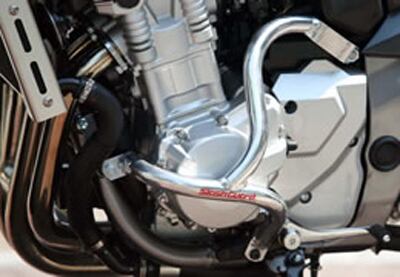 転倒時のダメージからエンジンをガード!従来のエンジンガードは、実用性のみでファッション性に欠けている。エンジンガードにファッション性と機能性をプラス=「スラッシュガード」